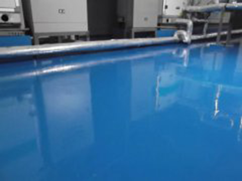 将环氧面漆材料混合均匀,用抹子抹在中间涂层上,形成一层防尘、耐腐蚀、耐磨、光滑光亮的自流平面层。