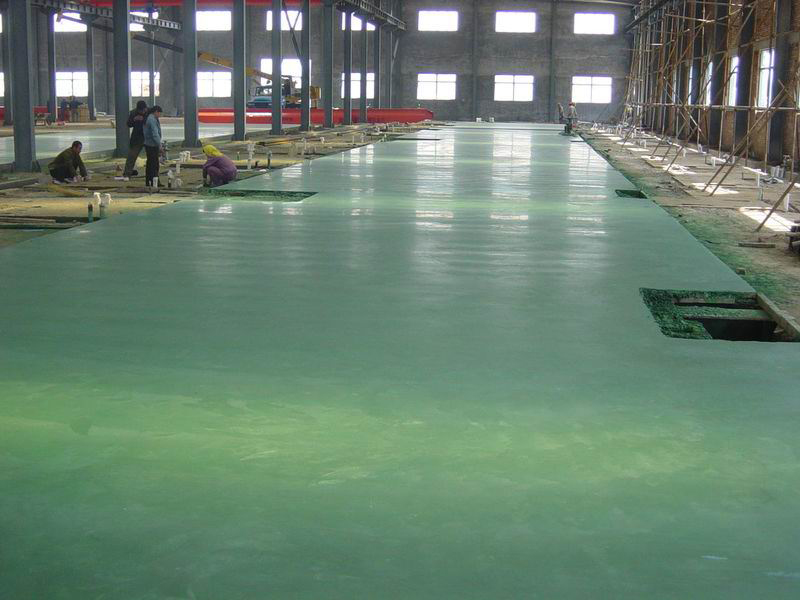 ◇金 钢 砂 层:先将2/3硬化剂(金属骨料或非金属骨料)均匀撒布,让材料充分吸收混凝土中水份,用抹光机械抹平;再将余下1/3硬化剂均匀撒布,抹平。当混凝土不被破坏时,再抹平,收光;