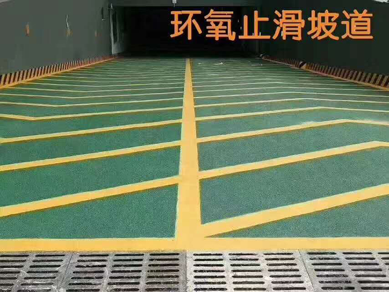 停车场出入口的无震动防滑坡道用水性防滑坡道材料比较好,耐候性和耐磨度各方面性能都不错,防滑坡道材料施工分为抗压层和防滑层,抗压曾用于保护基础地面不被磨损,防滑层可以有效的起到防滑减震的效果,鸿坤防滑坡道材料做出来的效果和图片一样: